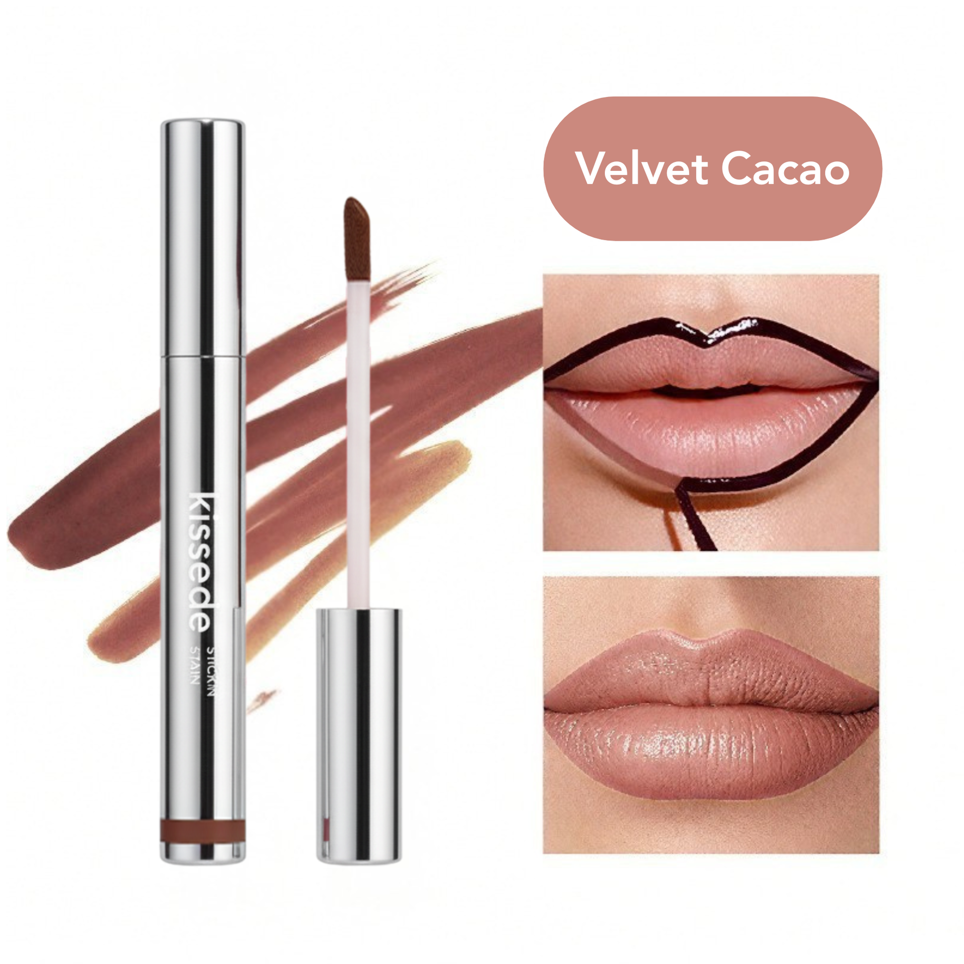 Velvet Cacao goes on bold, fades to a natural tint, and lasts beautifully—effortless and stunning.